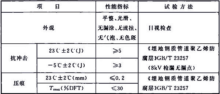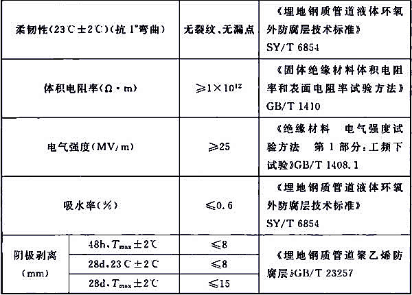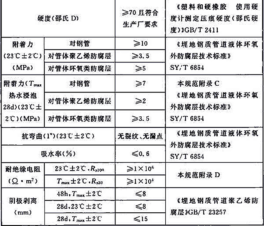 表2.2-1 液體環(huán)氧補(bǔ)口防腐層性能指標(biāo)(2A)