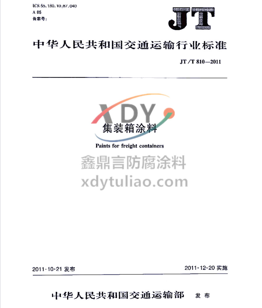 集裝箱涂料交通運(yùn)輸行業(yè)標(biāo)準(zhǔn)JT/T 810-2011
